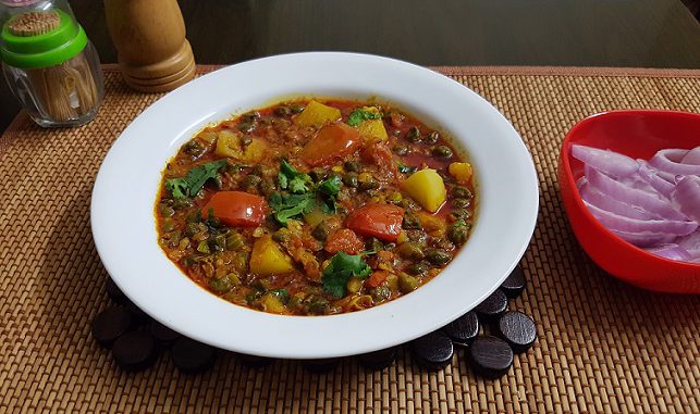- In this curry I have used fresh green chick peas. You can use dry green peas as well but in that case you have to soak them over night and pressure cook them before making this sabzi.