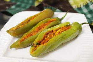 स्नेहा, नव्या हमारे राजस्थान में बेसन से कई प्रकार की चीज़ें बनती हैं जिसमे से आज में तुम्हे वहाँ की प्रसिद्ध बेसन वाली हरी मिर्च बनाना सिखाने जा रही हूँ। (Click here for English)
