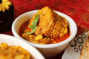 - Bring this gravy to a boil. Add 2 cups of water and then add the corn chunks along with corn kernels (daana) and mix well.