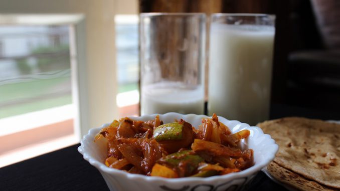 कैरी(कच्चा आम/अंबी) प्याज़ की सूखी सब्जी-राजस्थानी[Kairi Pyaz Ki Rajasthani Sabzi]